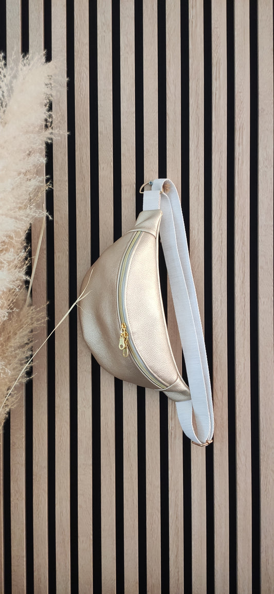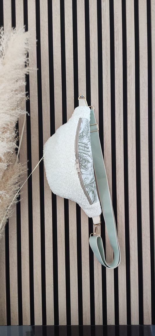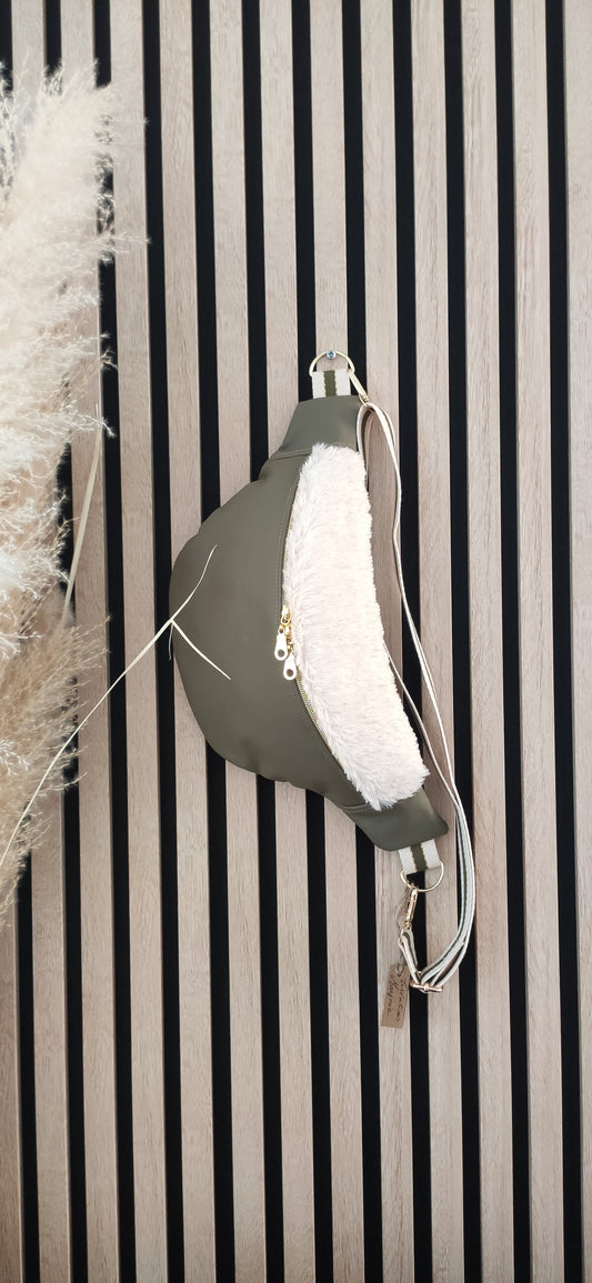 Sac Banane en Similicuir kaki et Moumoute beige irisé dorée